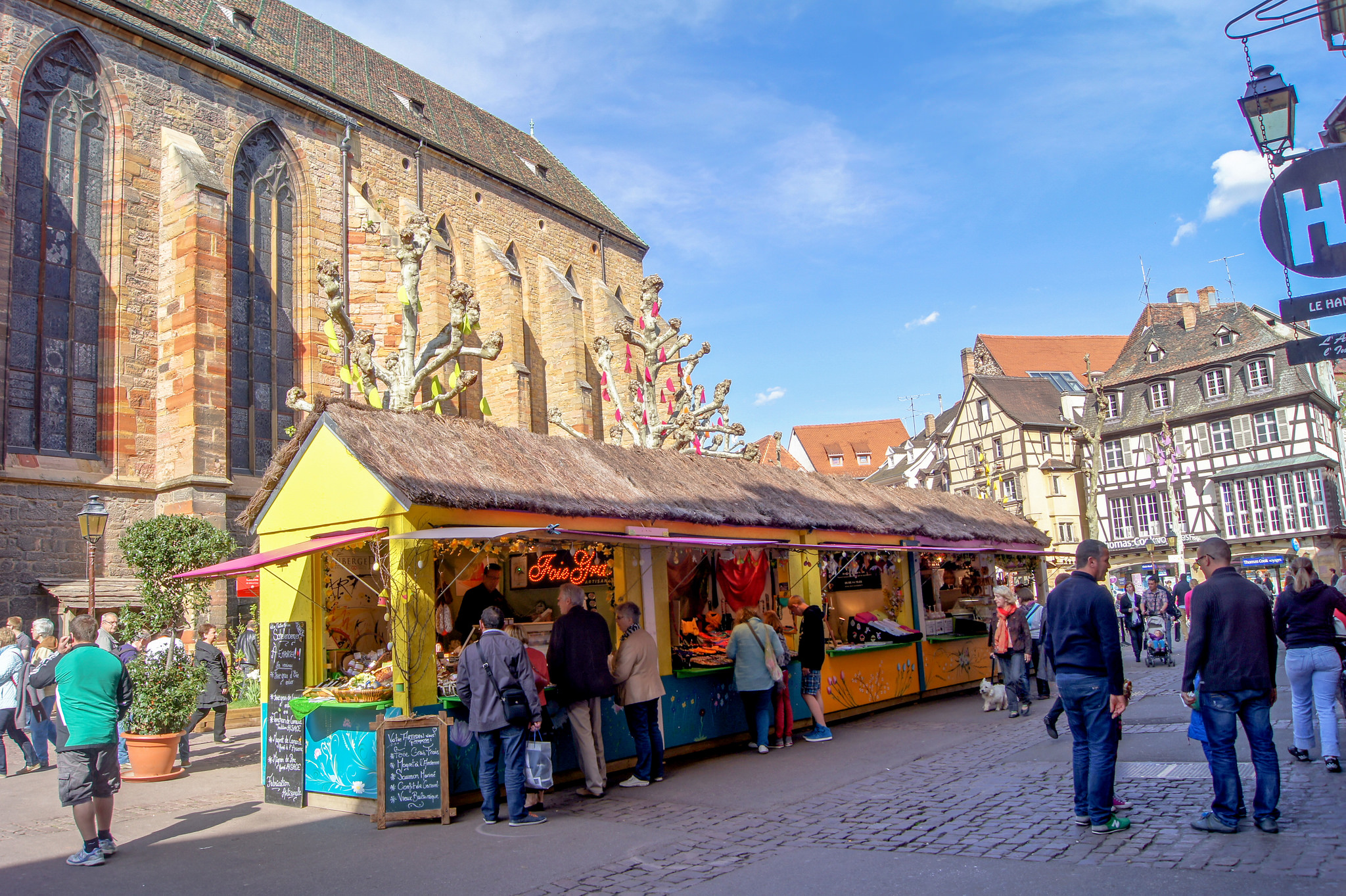 Pflanzen, Kosmetikprodukte, Schmuck, Spielzeug, Feines für Tafel, Küche und Genuss, Keramik ... dazu zahlreiche kulinarische Spezialitäten, feine Weine, Frühlingsbier, Schinken und Wurst, Käse und noch viel mehr, was Ihre Gaumen zu erfreuen vermag. Für das Osterwochenende führt auch kein Weg an den Osterhasen und Ostereiern aus Schokolade sowie dem traditionellen Lamala vorbei. Ein buntes Straßenprogramm und Ausstellungen von Kunsthandwerk ergänzen das Angebot, um die Rückkehr der schönen Jahreszeit gebührend zu feiern. Elsässischen Ostertraditionen Nach mehreren deutschen Rücknahmen hat das Elsass eine regionale Kultur, mit deutschem Einfluss entwickelt. Die Mehrheit der elsässischen Traditionen hat sich an den Bräuchen des Niederrheins orientiert. Um den Frühling zu empfangen, feiert Colmar Ostern, das in Frankreich ebenso wie in Deutschland, als das wichtigste Fest nach Weihnachten gilt. Außer dem Ostermontag, genießt die Region noch einen weiteren Feiertag: der „vendredi saint“, der dem deutschen Karfreitag entspricht.